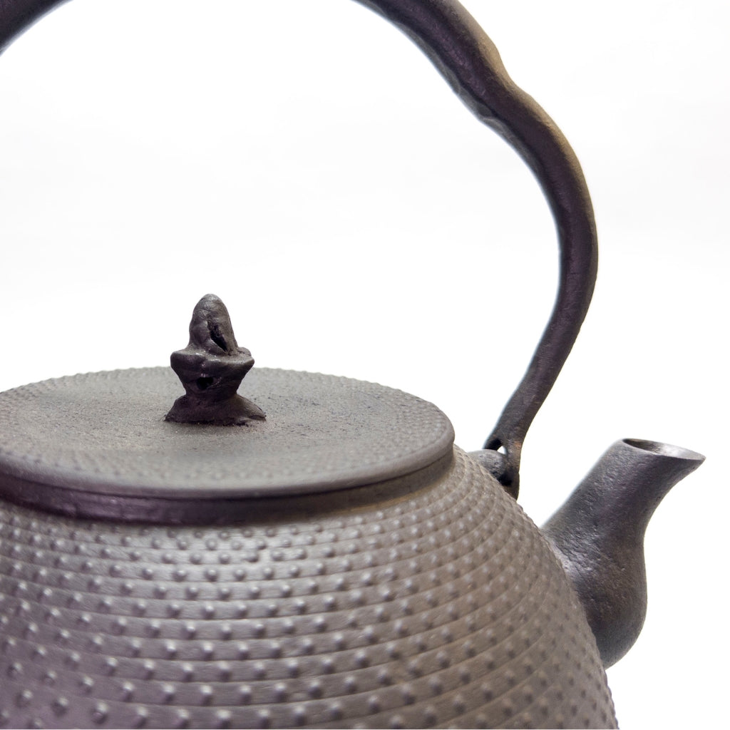 Its low, rounded body is encircled by a restrained Kazutama Arare pattern composed of small, evenly spaced dots, creating a calm and composed presence. Rather than being intended for special occasions, this tetsubin is designed to be used naturally as part of everyday tea time.